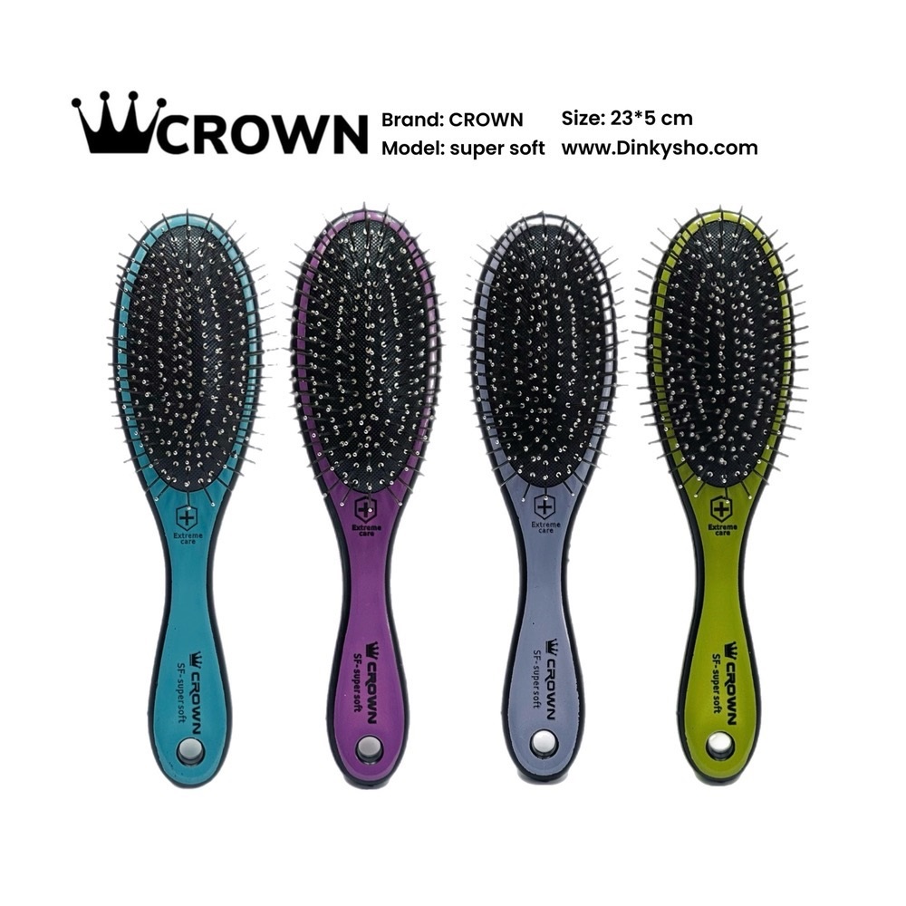 برس مو برند کراون مدل سوپر سافت، خوشدست و دارای کفهه نرم مناسب برای موهای گره خورده. کفهه دارای تکنولوژی نانو.